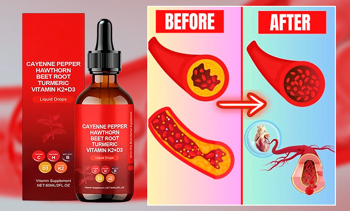 This drop formula combines cayenne pepper and hawthorn as powerful vasodilators that rapidly open blood vessels and improve circulation while beet root further enhances nitric oxide production to sustain healthy blood flow and lower pressure; turmeric’s curcumin simultaneously fights inflammation and prevents plaque formation; and vitamin K2 paired with D3 activates proteins that remove calcium deposits from arteries and redirect it to bones, collectively clearing clogged vessels, preventing new blockages, and restoring flexible, healthy blood flow.